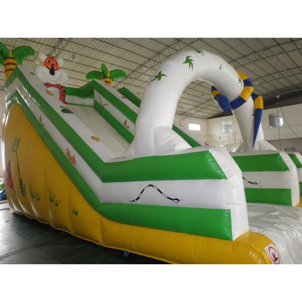 We have inflatable water slide, inflatable boat slide of Kraken Wow, slide with obstacle, cute slide and many other small or huge slides. Most of them are made by 0.55mm colorful Plato PVC tarpaulin that meets CE&EN71. And the material is durable, UV resistant, fire retardant and innocuous.